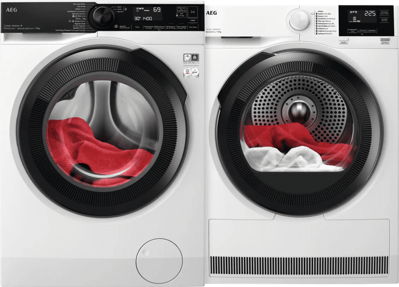 AEG heeft verschillende losse wasmachines en drogers die perfect samen gaan. Ze zijn qua ontwerp en bediening op elkaar afgestemd. Veel mensen kiezen voor een combinatie uit de 6000, 7000, 8000 of 9000 serie. Met zo’n set ziet je wasruimte er strak uit en werken de programma’s prettig samen.