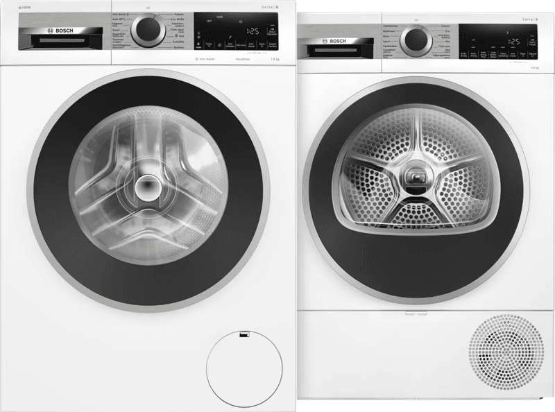 Bosch heeft verschillende losse wasmachines en drogers die goed bij elkaar passen. Heb je een kleiner budget? Dan zijn er sets onder de €1000, vaak met een Serie 4 wasmachine en een condensdroger. Wil je meer mogelijkheden en extra gemak? Kijk dan naar sets vanaf €1500 met een Serie 8 wasmachine en een zuinige warmtepompdroger.