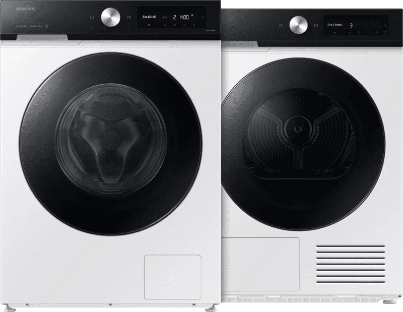 De wasmachines hebben programma’s zoals stoomwassen voor extra hygiëne, snelwas als je haast hebt, eco-programma’s en speciale standen voor bijvoorbeeld wol of sportkleding. De drogers bieden vergelijkbare opties voor katoen, synthetische stoffen, wol en verschillende droogniveaus. Veel Samsung sets hebben AI Control: de wasmachine geeft info door aan de droger, zodat die automatisch het juiste programma kiest. Dat scheelt weer nadenken.