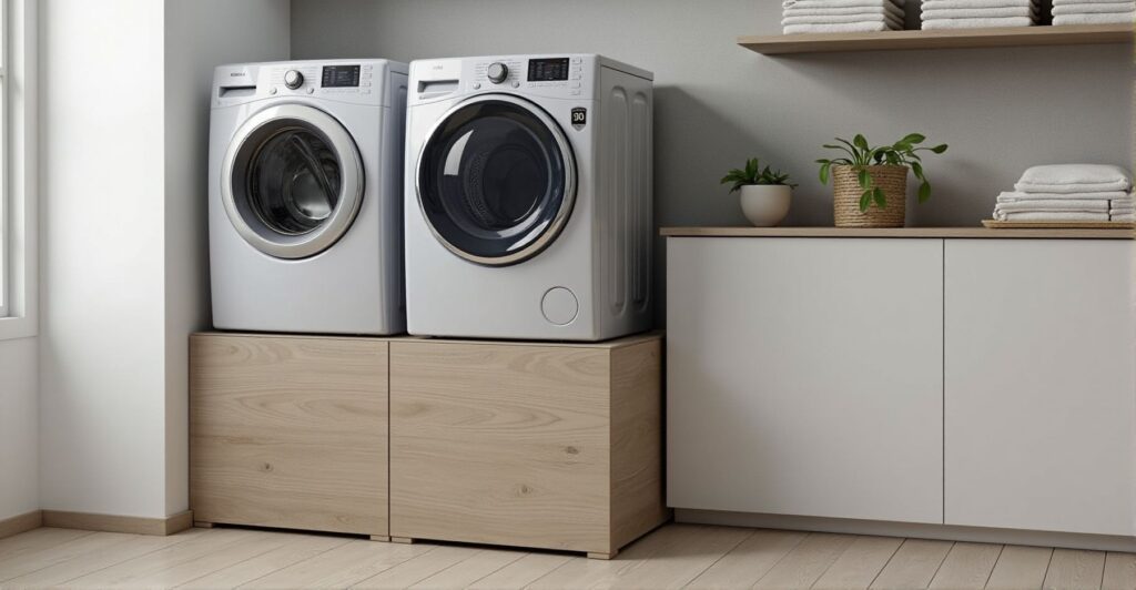 Met een zwarte wasmachine en droger kun je alle kanten op in je interieur. De donkere kleur valt op in een lichte ruimte, maar past ook mooi bij donkere tinten. Er zijn steeds meer accessoires speciaal voor zwarte sets, zodat je alles goed op elkaar kunt afstemmen. Denk aan verbindingsframes, lades en afdekplaten in zwart of antraciet. Zo maak je er echt een geheel van.