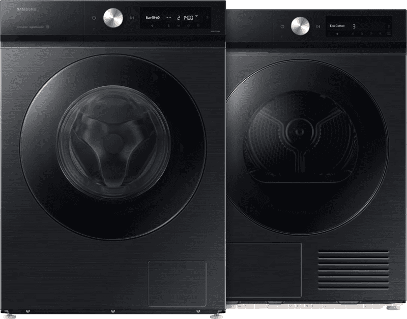Zwarte wasmachine en droger sets zijn meestal wat duurder dan witte of zilveren modellen. Je vindt ze bijna niet in het goedkope segment (onder de €900 per set). De meeste zwarte modellen beginnen in het middensegment, rond de €1.200 tot €1.400 voor een set van Samsung of Bosch. Een vergelijkbare witte set is vaak €200 tot €300 goedkoper. In het topsegment betaal je voor een zwarte Miele of high-end Samsung al snel €2.000 of meer. De witte versies zijn gemiddeld €200 tot €400 goedkoper. Voorbeeld: een zwarte Samsung set kost ongeveer €2.099, terwijl de witte variant €1.799 kost. Voor een Miele Black Edition betaal je zelfs €3.299, waar de witte versie €2.899 kost.